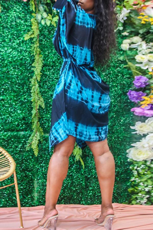 Asymmetric Hem Tie Dye Print Shirt Dress