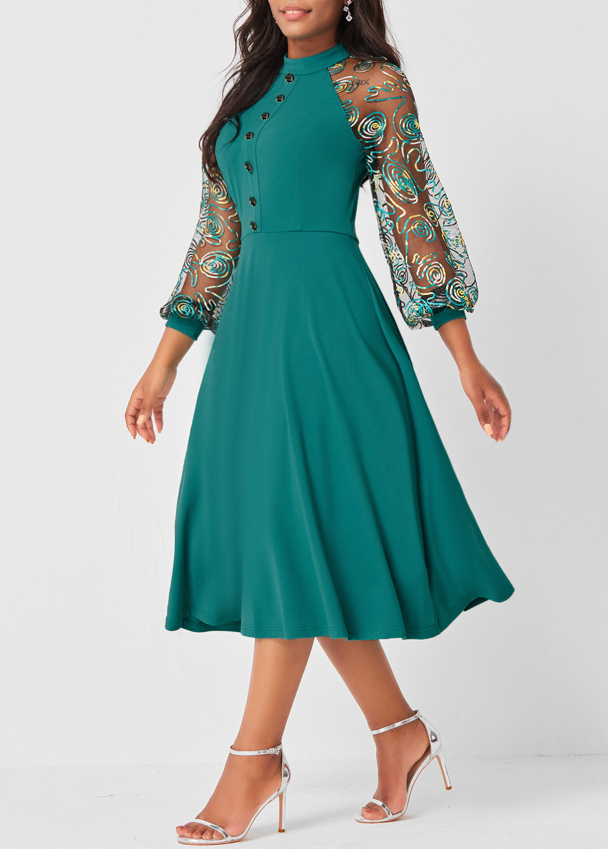 Lace Patchwork Ruffle Hem Button Detail Dress