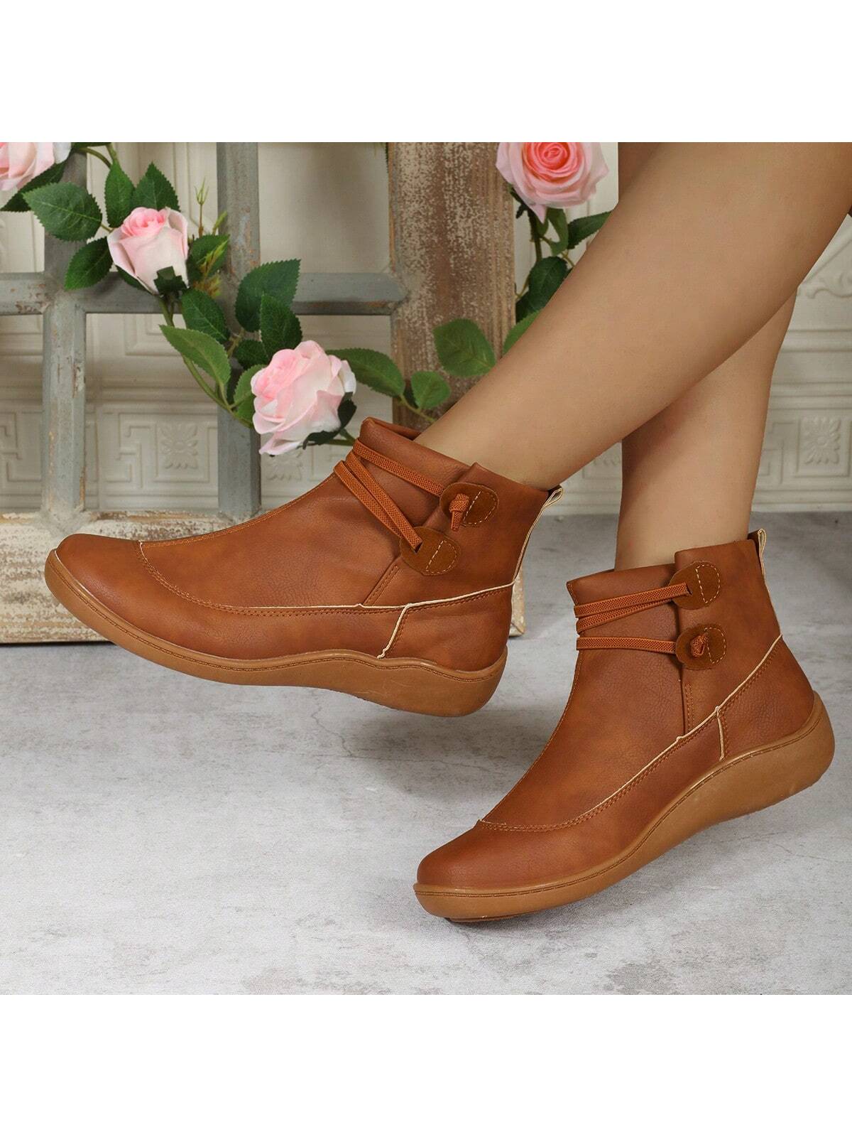 Women's Boots With Plush Lining, British Style Ankle Boots, High Top Flat Shoes, Suitable For Outdoor And Casual Wear, Large Size Available Up To 43, Industrial Shoes