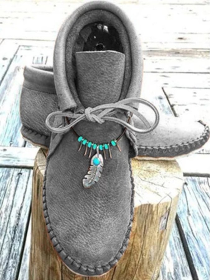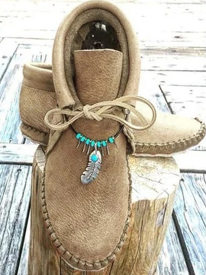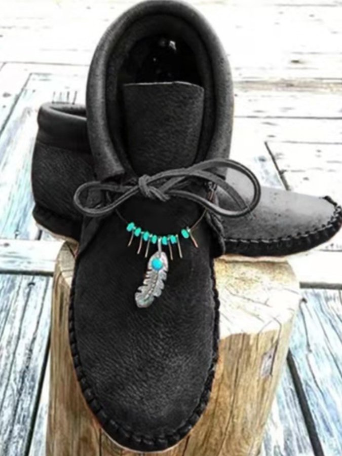 • Women's ethnic style flat round toe short boots