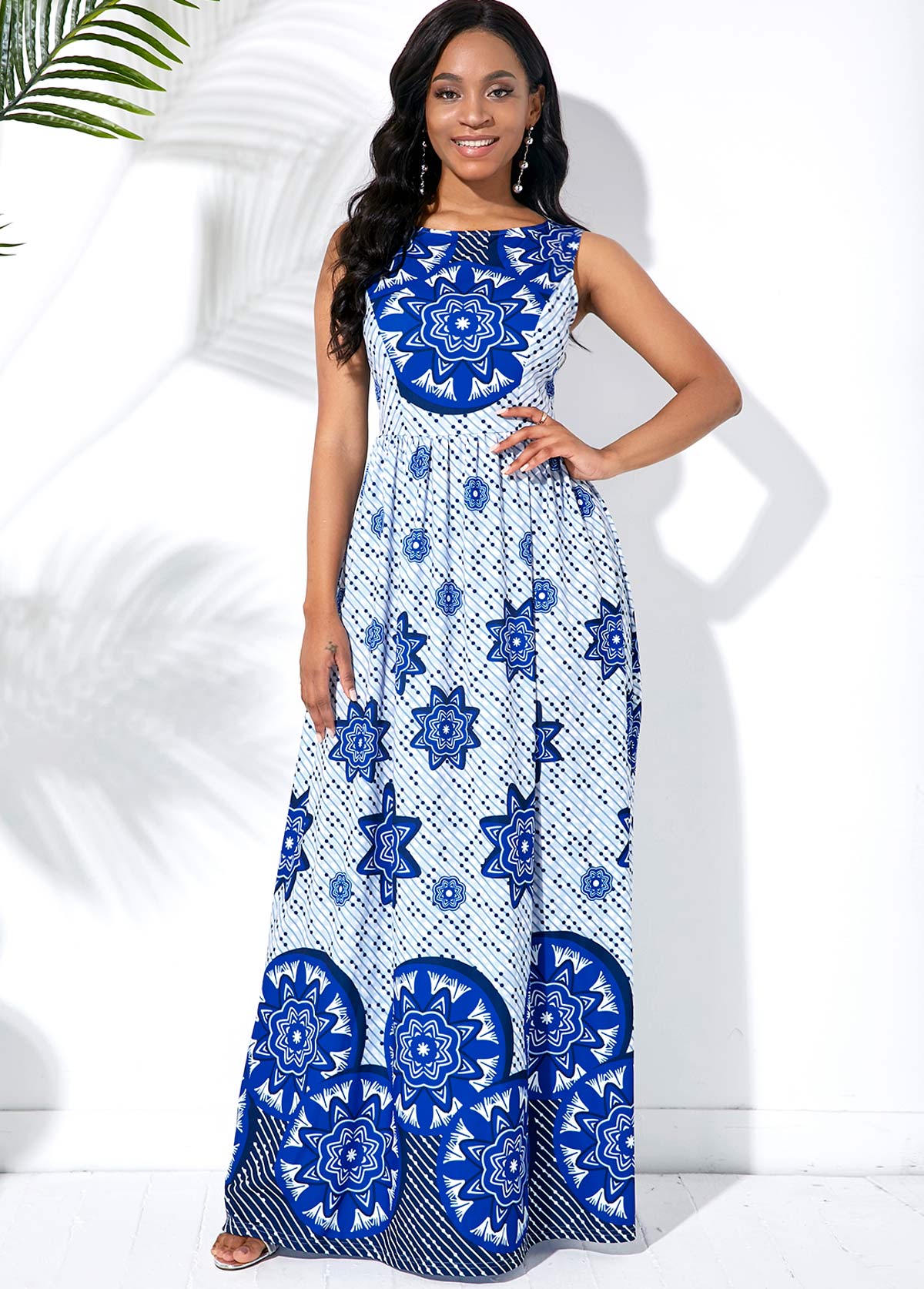 Round Neck Sleeveless Tribal Print Maxi Dress